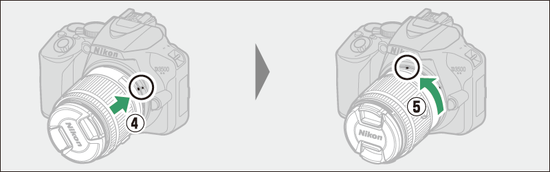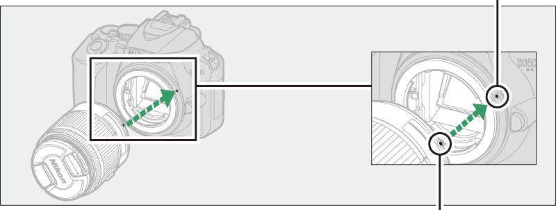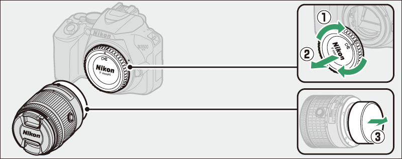 Pas på, at der ikke kommer støv ind i kameraet, når objektivet eller kamerahusdækslet fjernes. Der benyttes generelt et objektiv af typen AF-P DX NIKKOR 18–55mm f/3.5–5.6G VR til illustrative formål i denne brugervejledning.
