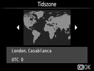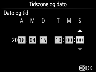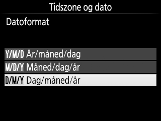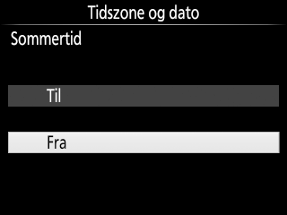 Indstil kameraets ur. Anvend multivælgeren og knappen J for at indstille kameraets ur. q  Vælg tidszone  w  Vælg datoformat  e  Vælg indstilling for sommertid  r  Indstil tid og dato (bemærk, at kameraet anvender 24-timers ur) Uret kan indstilles til enhver tid ved hjælp af indstillingen Tidszone og dato > Dato og tid i opsætningsmenuen.