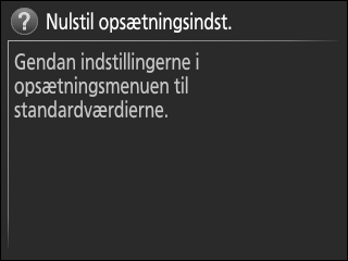 Hvis ikonet d vises i skærmens nederste venstre hjørne, kan du få vist en beskrivelse af den aktuelt valgte indstilling eller menu ved at trykke på knappen W (Q). Tryk på 1 eller 3 for at rulle gennem visningen. Tryk igen på W (Q) for at vende tilbage til menuerne.