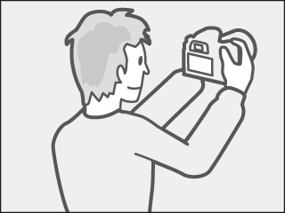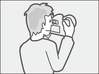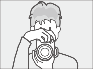 For at forhindre at det lys, der kommer ind via søgeren, forekommer på billedet eller forstyrrer eksponeringen, anbefaler vi, at du dækker søgeren med din hånd eller andre genstande som et ekstra øjestykkedæksel, før du tager billeder uden at sætte øjet mod søgeren (0 Dæk søgeren til).