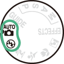 | Z Auto/ b Auto (flash slukket) | Motiver, som passer til indstillingerne i eller j, eller som ikke falder ind under de ovenfor opstillede kategorier |