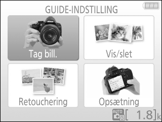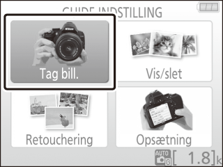 Guide-indstillingen nulstilles til Nem betjening > Auto, når programhjulet drejes hen på en anden indstilling, eller kameraet slukkes.