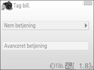 Påvirker andre elementer af Avanceret betjening. For at gendanne standardindstillingerne skal du slukke kameraet og derefter tænde det igen.