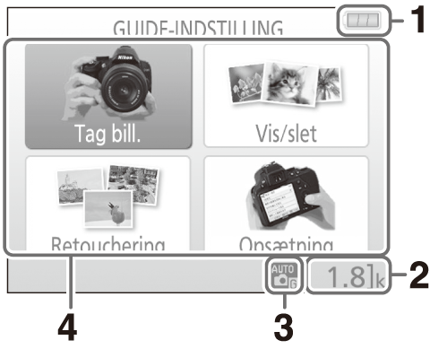 | 3 | Optageindstilling: En indikator for guideindstilling vises på ikonet for optageindstilling. |