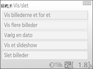Kun tilgængelig, når et kompatibelt Eye-Fi-hukommelseskort er isat (0 Eye-Fi-overførsel).
