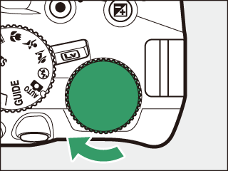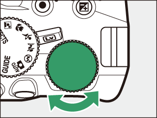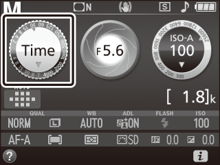 Vælg lukkertiden. Mens lysmålerne er aktive, skal du dreje kommandohjulet til venstre for at vælge lukkertiden Time (&).  Kommandohjul