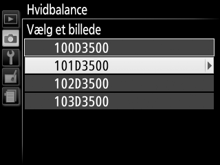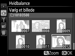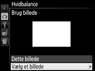 Vælg Vælg et billede. Markér Vælg et billede, og tryk på 2 (for at springe over de resterende trin og anvende det billede, der sidst blev valgt til forudindstillet hvidbalance, skal du vælge Dette billede).