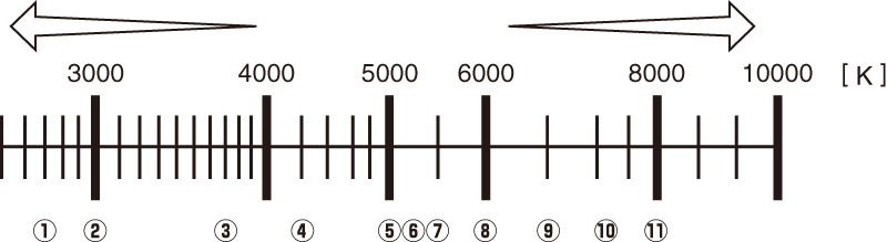 Enhver ændring af farvetemperatur giver en større forskel i farven ved lav farvetemperaturer end ved høje farvetemperaturer. Eksempelvis medfører en ændring på 1000 K en meget større farveændring ved 3000 K end ved 6000 K. Mired, der beregnes ved at gange den reciprokke værdi af farvetemperaturen med 10 6, er et mål for farvetemperatur, der tager højde for sådanne variationer, og som sådan er enheden, der anvendes i kompensationsfiltre til farvetemperatur. F.eks: