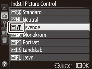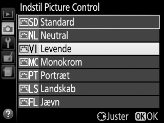 Vælg en Picture Control. Markér en Picture Control, og tryk på J.