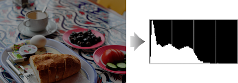 Hvis billedet er mørkt, forrykkes tonefordelingen til venstre.