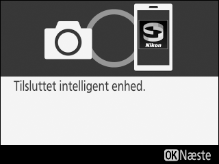 Fejl i sammenkædning Hvis du venter for længe, fra du trykker på knappen på kameraet, og til du trykker på knappen i SnapBridge, mislykkes sammenkædningen, og der vises en fejl. - Kamera: Tryk på J, og vend tilbage til trin 1.