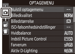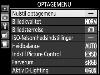 For at få vist optagemenuen skal du trykke på G og vælge fanen C (optagemenu).