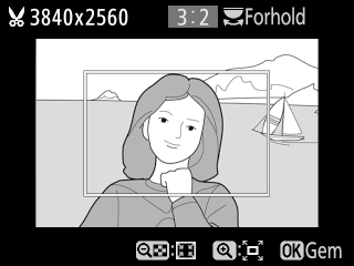 | Flytte beskæringen | Anvend multivælger til at placere beskæringen. Tryk på beskæringen, og hold den nede for hurtigt at flytte beskæringen til den ønskede position. |