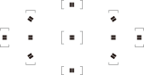 SB-5000: AF-hjælpelyset er tilgængeligt, når AF-objektiver på 24–135 mm anvendes med fokuspunkterne vist.