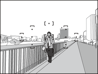 I sådanne tilfælde anvendes manuelt fokus eller fokuslås for at fokusere på et andet motiv på den samme afstand og derefter komponere billedet igen. For yderligere information, se "Opnå gode resultater med Autofokus" (0 Opnå gode resultater med autofokus).