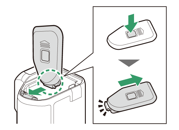 Hoidikukambri katte kaitsmiseks kahjustuste eest võib see lahti tulla, kui selle avatud ajal rakendatakse jõudu. Hoidikukambri katte saab uuesti kinnitada, nagu näidatud.