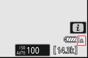 バッテリー装着部A、Bのどちらに装着されているバッテリーが現在使用されているか、カメラの撮影画面に表示されるバッテリー残量表示横のアイコンで確認できます。