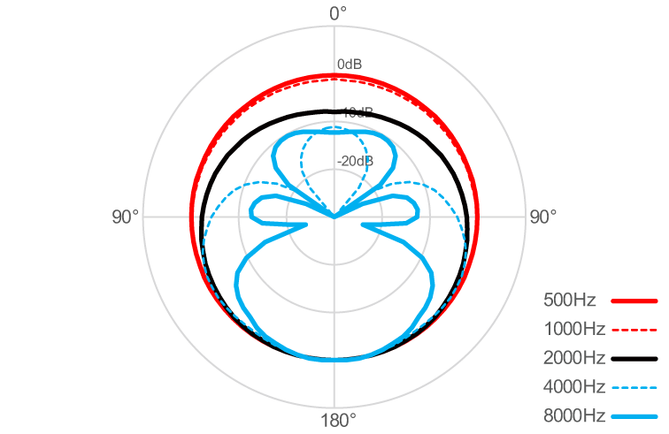 Sageduskarakteristikud ja polaarmustrid varieeruvad vastavalt mikrofoni režiimile ja kõlamustri sätetele.