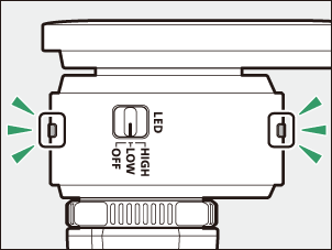 - Hvis LAV eller HØY velges mens det ikke tas opp noe, vil både statuslampene foran og bak lyse kort med det valgte lysstyrkenivået før de slås av.
