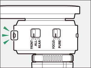 En eller begge statuslampene blinker to ganger med lysstyrken som er angitt med LED-lysstyrkebryteren i henhold til posisjonen som er valgt med bryteren for opptaksmønster når bryteren betjenes.
