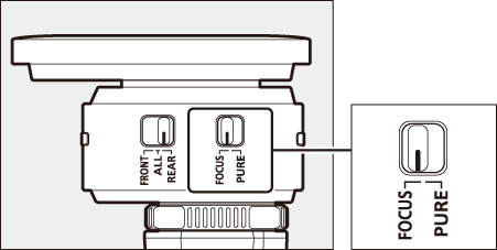 Du kan stille inn mottaksretningen med både PURE- og FOCUS -mikrofonmodusene. Hvis du velger FOCUS med FRONT- eller REAR- mottaksretning, forsterkes retningsvirkningen. For detaljer om egenskapene til hver kombinasjon, se "Lydegenskaper" ( 0 Lydegenskaper ).