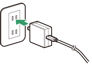 Uzlādes maiņstrāvas adapteri EH-7P vai USB vadu (ar Type-C savienotājiem abos galos), kas pievienots maiņstrāvas adapterim EH-8P, pievienojiet akumulatora lādētājam.