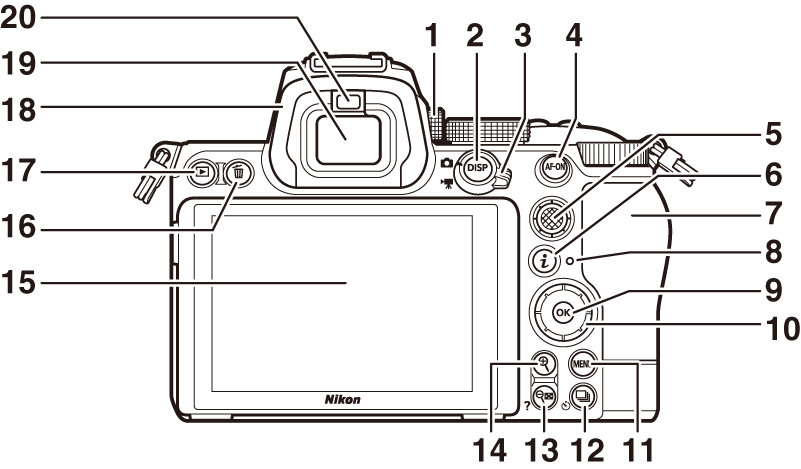 Бутон W ( Q ) ( Бутоните X и W ( Q ) , Иконата d (Помощ) , Преглед на снимки , Използване на увеличение при възпроизвеждане ) |