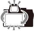 [ ]: Мониторът се използва за снимане, менюта и възпроизвеждане. Дисплеят на визьора ще остане празен, дори ако поставите окото си към визьора. |