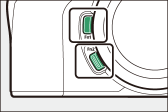 Ролите, изпълнявани от бутоните Fn1 и Fn2 , могат да бъдат избрани чрез персонализирана настройка f2 или g2 [ ] > [ ] и [ ].