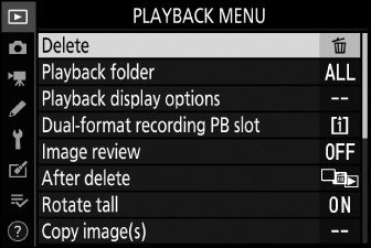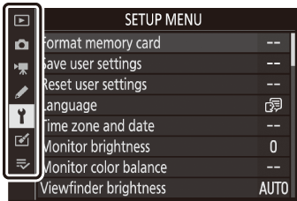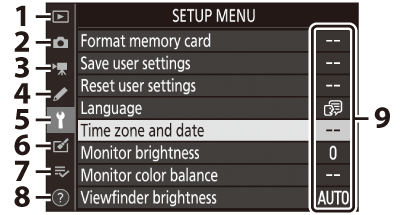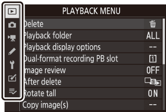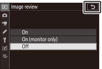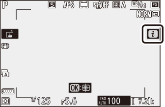 Опциите могат да се разглеждат чрез докосване на елементи на дисплея или чрез маркиране на елементи и натискане на J ; след това изборът може да се направи с помощта на мултиселектора.