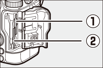 Камерата е оборудвана с два слота за карти с памет: Слот 1 ( q ) и Слот 2 ( w ), което позволява използването на две карти с памет. Ако използвате само една карта с памет, поставете я в слот 1.
