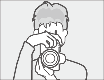 Като държите ръкохватката в дясната си ръка и хванете корпуса на фотоапарата или обектива с лявата, притиснете лактите си към страните на гърдите си.