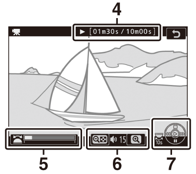 Филмите са обозначени с икона 1 . Докоснете иконата a на дисплея или натиснете бутона J , за да започнете възпроизвеждането (лента за напредъка показва приблизителното ви положение във филма).