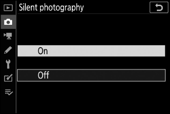 Избирането на [ ] за [ ] не заглушава напълно камерата. Звуците от камерата все още могат да се чуват, например по време на автофокус или настройка на блендата, в последния случай най-забележимо при диафрагми, по-малки (т.е. при f-числа по-високи) от f/5.6.