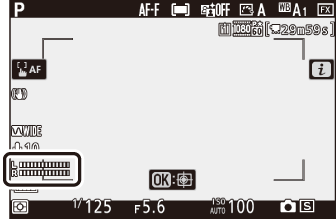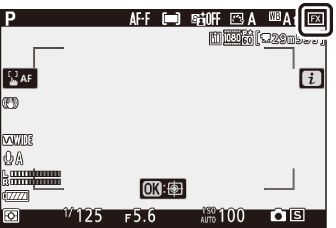 Ако [ ] е избран за [ ], [ ], [ ] или [ ] в менюто за снимане на филми, в горния ляв ъгъл на филма ще се появи икона h i менюто. Промените, направени в настройката от менюто i в режим на снимки, ще се прилагат и в режим на филм и обратно .