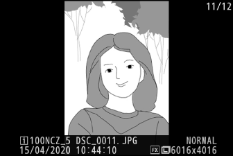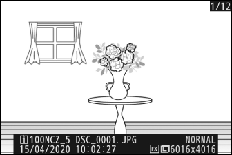 Натиснете 1 , 3 или бутона DISP , за да видите повече информация за текущата снимка ( Информация за снимка ).