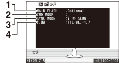 Данните за светкавицата се показват само за снимки, направени с допълнителни светкавици ( Снимка със светкавица в камерата , Снимане с отдалечена светкавица ).