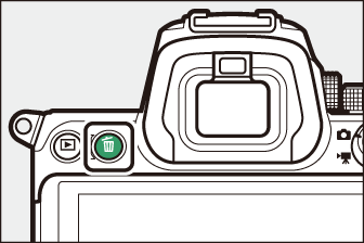 Ако снимката, избрана на дисплея за възпроизвеждане при натискане на бутона O , е записана с две поставени карти с памет и [ ] или [ ] избрани за [ ], вие ще бъдете бъде подканено да изберете дали да изтриете и двете копия или само копието на картата в текущия слот ( Изтриване на копия ).