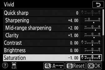Съществуващите предварително зададени или персонализирани Picture Controls могат да бъдат модифицирани, за да отговарят на сцената или творческите намерения на потребителя.