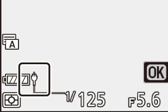 Икона за доставка на USB захранване се появява на дисплея за снимане, когато фотоапаратът се захранва от външен източник.