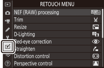 За да видите менюто за ретуширане, изберете раздела N в менютата на камерата.