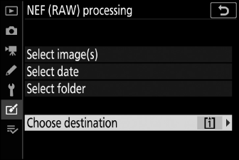 Маркирайте слота с картата, съдържаща NEF (RAW) изображения и натиснете 2 .
