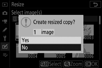 Ще се покаже диалогов прозорец за потвърждение; маркирайте [ ] и натиснете J , за да запазите преоразмерените копия.