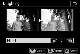 D-Lighting изсветлява сенките. Идеален е за тъмни или осветени отзад снимки.