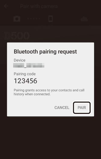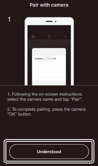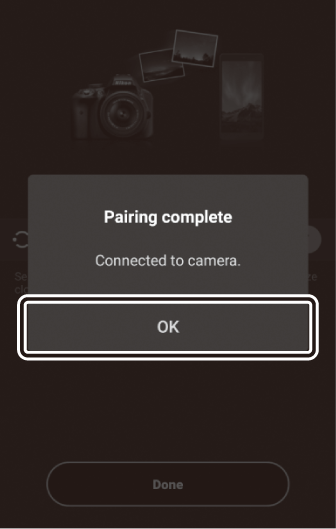 Грешка при сдвояванеАко изчакате твърде дълго между натискането на бутона на камерата и докосването на бутона на устройството с Android, устройството ще покаже съобщение за грешка и сдвояването ще бъде неуспешно. Докоснете [ ] и се върнете към Стъпка 2.