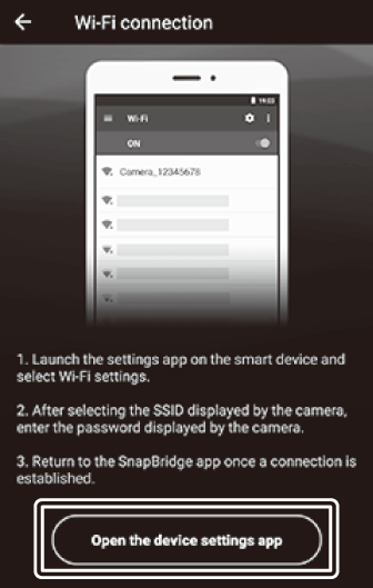 Смарт устройство: Върнете се към приложението SnapBridge.