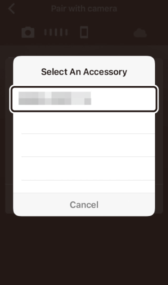 Устройството с iOS ви подканва да изберете аксесоар. Докоснете отново името на камерата.
