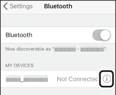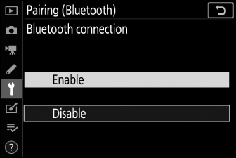 Деактивиране на BluetoothЗа да деактивирате Bluetooth, изберете [ ] за [ ] > [ ] > [ ] в менюто за настройка на камерата.