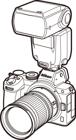 Фотоапаратът не може да се използва със светкавици, които биха приложили напрежение над 250 V към X контактите на фотоапарата или контактите на късо съединение на обувката на аксесоара. Използването на такива светкавици може не само да попречи на нормалната работа на фотоапарата, но и да повреди веригите за синхронизиране на светкавицата на фотоапарата и/или светкавицата.