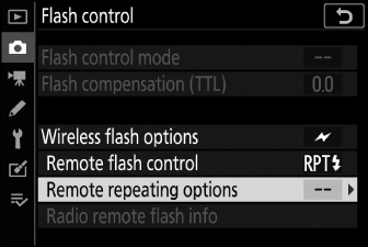 Ако въпросната светкавица е SB-5000 или SB-500, настройките могат да се регулират от фотоапарата. За повече информация вижте „Използване на оптичен AWL с SB-5000 или SB-500“ ( Използване на оптичен AWL с SB-5000 или SB-500 ). Вижте документацията, предоставена със светкавицата за повече информация.